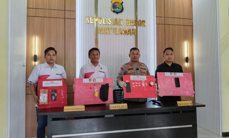 Dalam mengungkap peredaran gelap narkoba, Kapolres Way Kanan didampingi oleh Kasatres Narkoba, Iptu Prayugo Widodo dan Kasihumas, Ipda Julian Fijriyansyah Sengaji, telah meringkus 6 tersangka dan barang bukti 5,64 gram sabu.